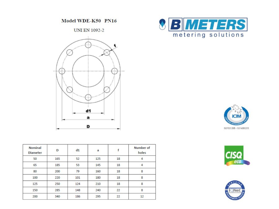 Průmyslový suchoběžný vodoměr přírubový WDE-K50 DN50 pro modul IWM-PL4, IWM-MB4, IWM-TX4 a IWM-LR4.