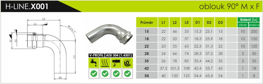 H-LINE INOXPRESS 304 oblouk 90° M x F