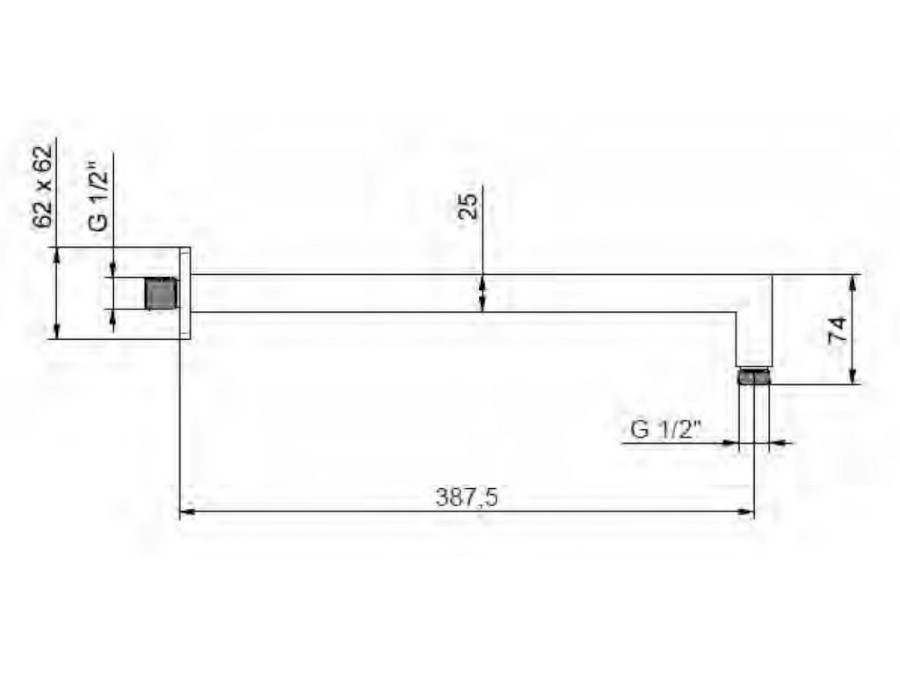 Mosazná pochromovaná výtoková trubka čtvercová TIEMME pro hlavové sprchy s délkou 400 mm.