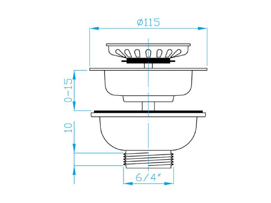Dřezový výtokový ventil 1"1/2, 115 mm