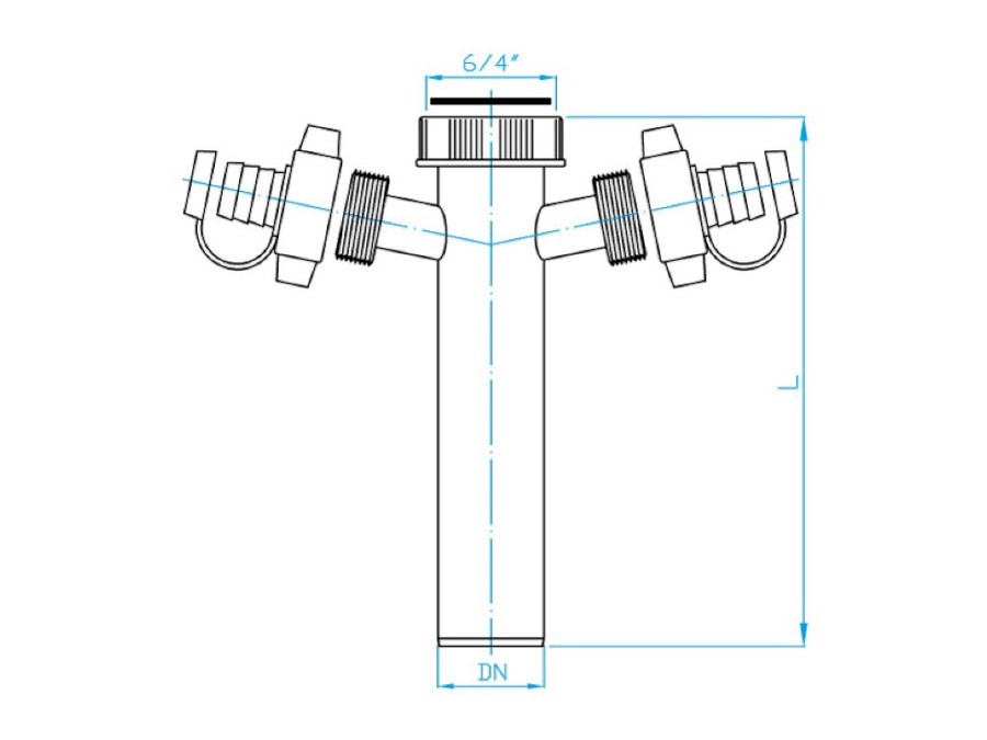 Trubka odtoková pro myčky a pračky, se dvěma odbočkami, délka 250 mm, 1"1/2 x 40.