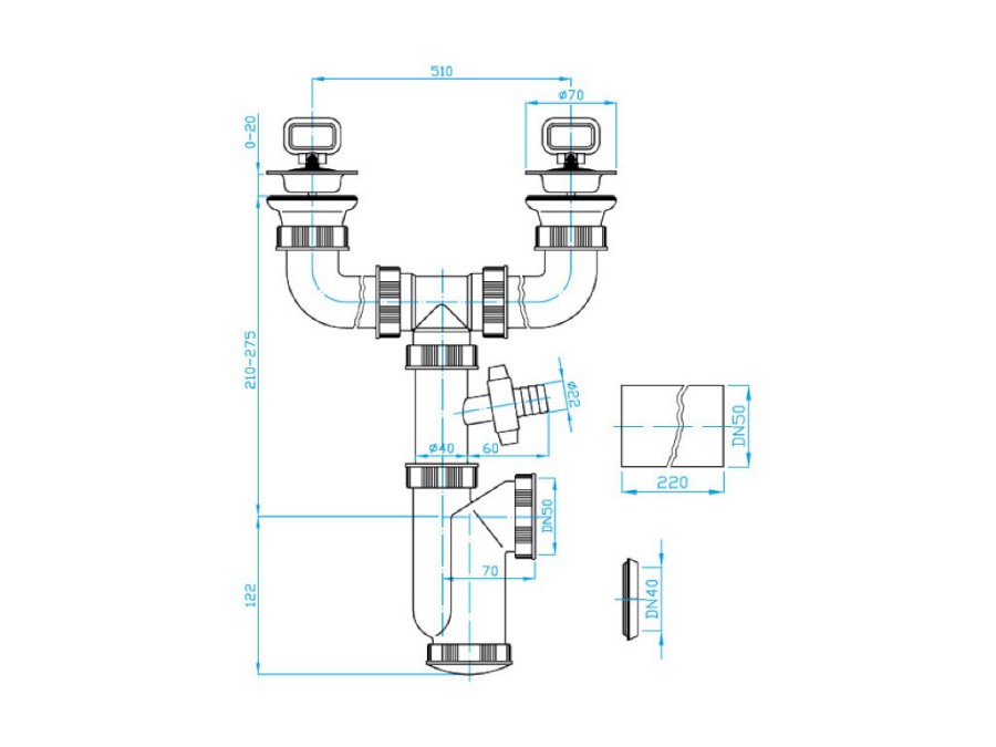 Dvoudřezový sifon s pračkovým vývodem DN 50.