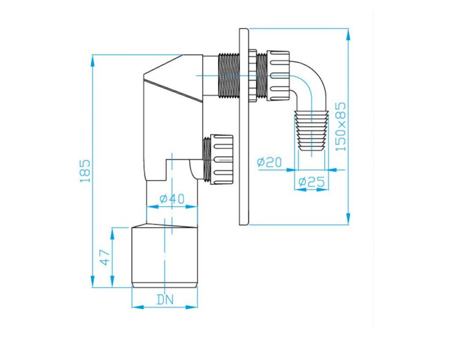 Chrom podomítkový pračkový sifon DN 40/50.