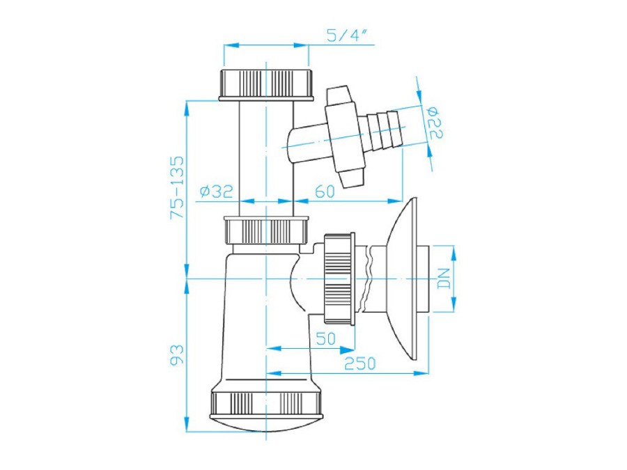 Sifon E s pračkovým vývodem a matkou 1"1/4, DN 40.