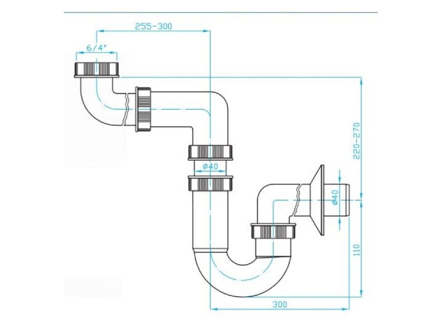 E sifon úsporný s matkou 1"1/2, DN 40.