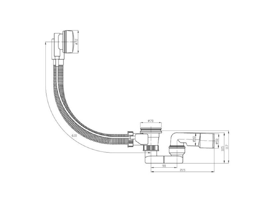Chromová vanová automatická výpus včetně vanového sifonu DN 40/50, L = 610 mm.