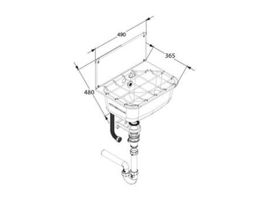 Kompletní nerezová výlevka HAAS s masivním roštem, přepadem, plochou na instalaci baterie a sifonem.