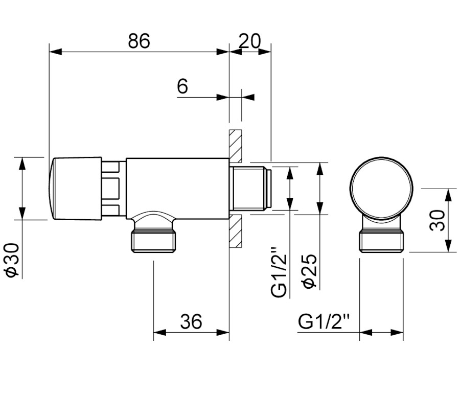 Pisoárový nástěnný časový ventil MCM, s kratším závitem, bez příslušenství.