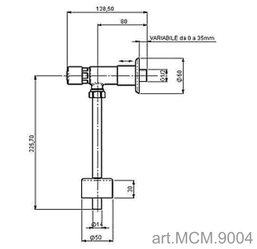 Pisoárový samouzavírací ventil MCM. Nástěnný, kompletní.