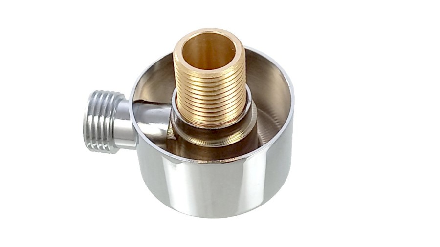 Stěnová přípojka se používá pro vyvedení vody z baterií nebo ventilů zabudovaných pod omítkou na povrch stěny. Je zároveň vybavena i úchytem na sprchu. Tento úchyt je ve většině případů pevný (nedá se natáčet) jako v tomto případě.