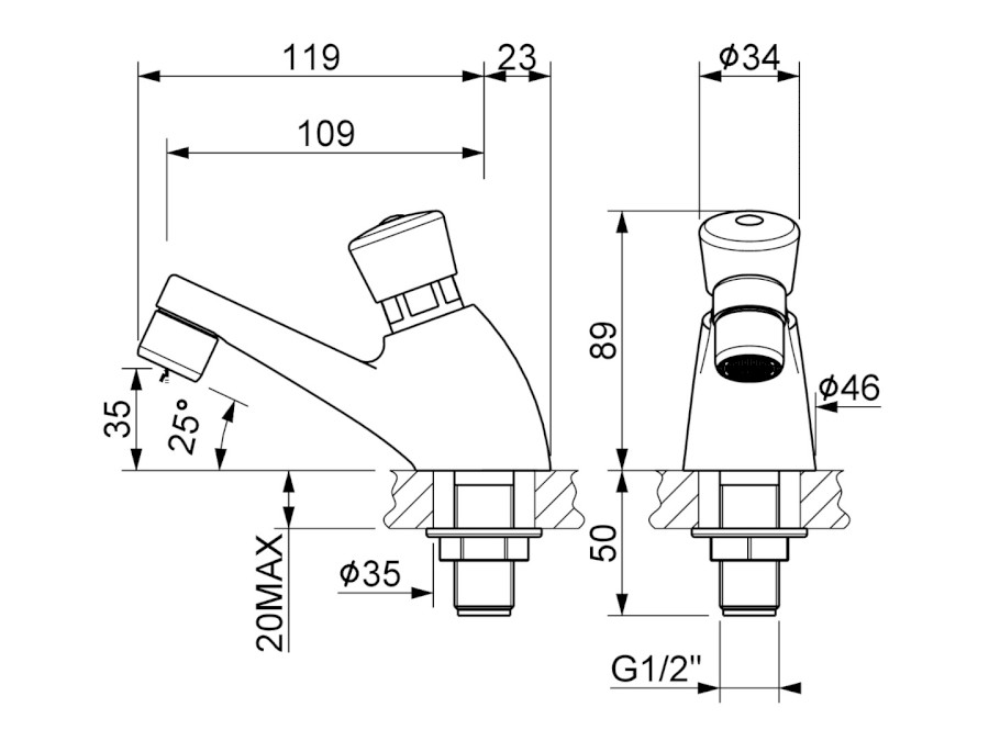 Robustní samouzavírací stojánková baterie určená pro soukromé, veřejné i provozní prostory. Automaticky uzavírá proud vody po nastaveném čase (8 - 12 s), čímž šetří vodu a snižuje provozní náklady.