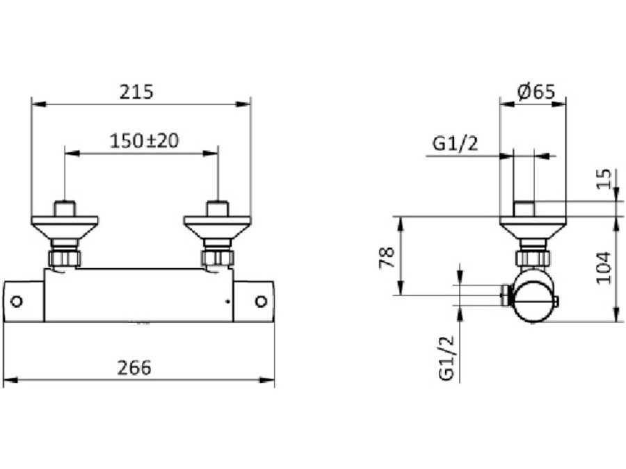 Termostatická sprchová baterie TIEMME bez příslušenství, rozteč 150 mm.