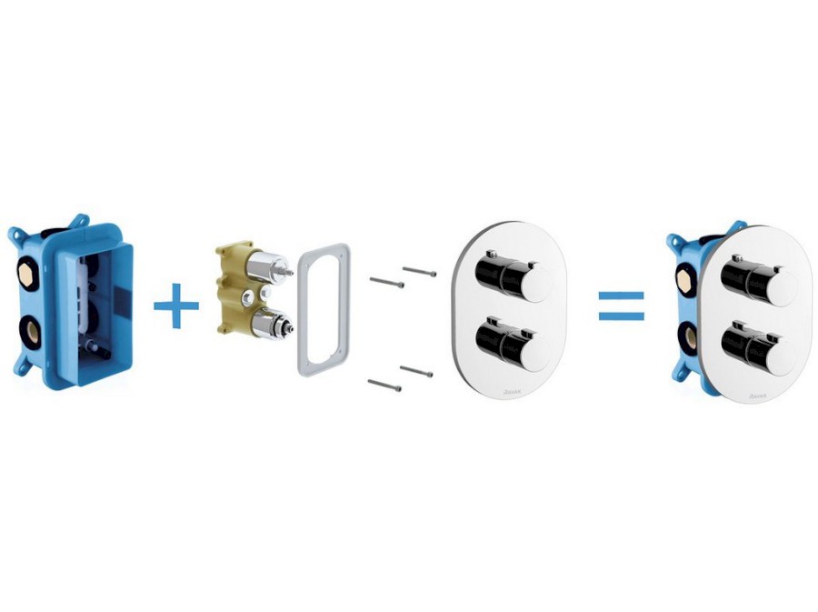 Instalační těleso, které snižuje na minimum riziko poškození podomítkové baterie při montáži nebo jejího špatného zabudování. Instalace je se základním tělesem méně pracná, rychlejší a výsledek je celkově dokonalejší. Plastový box chrání vnitřní část těla baterie při zapouštění do zdi a zároveň umožňuje lepší manipulaci. R-box Multi je připraven pro standardní třícestnou nebo čtyřcestnou podmítkovou baterii.