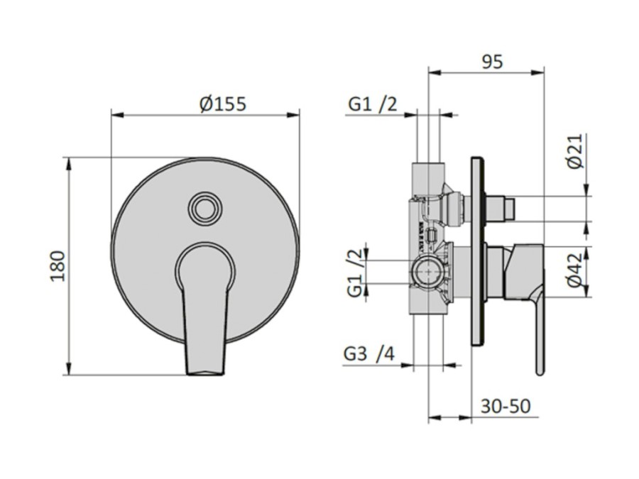 TEN sprchová podomítková baterie TIEMME s dvěma vývody.
