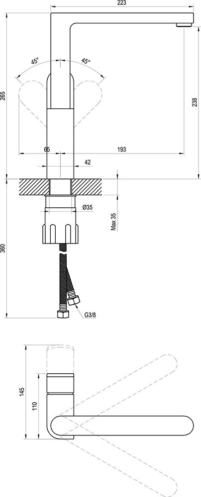 provedení: 360° - otáčení ramínka bez omezení