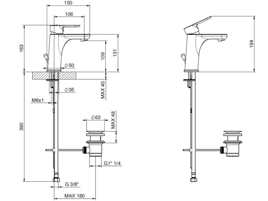 ELEVEN stojánková umyvadlová baterie TIEMME, bez výpusti, vyšší provedení.