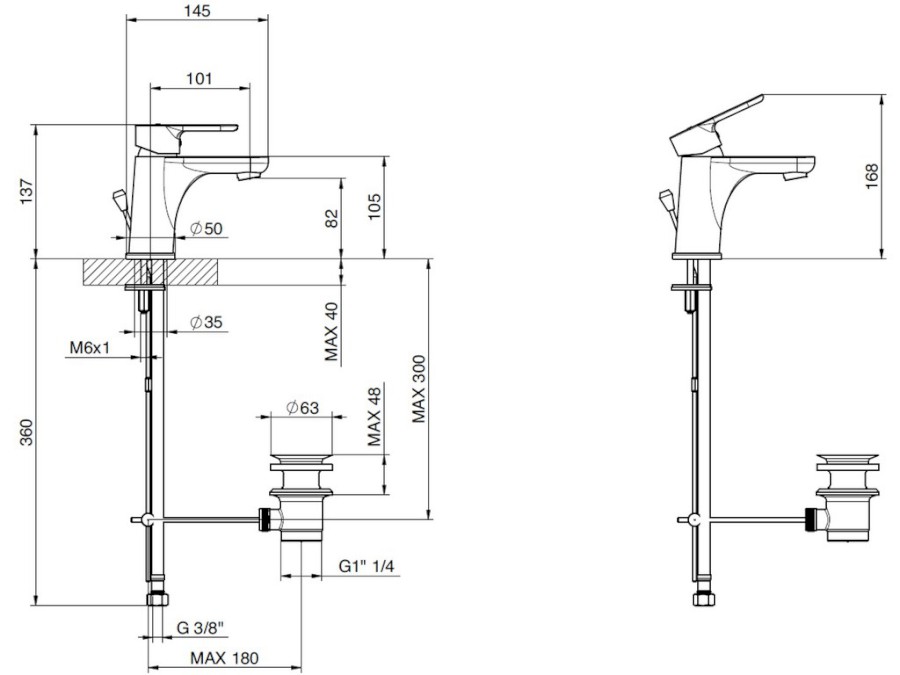 ELEVEN stojánková umyvadlová baterie TIEMME s úspornou kartuší, bez výpusti.