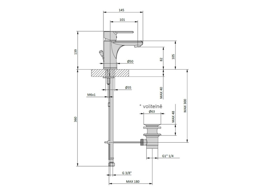 TEN stojánková umyvadlová baterie TIEMME s úspornou kartuší, bez výpusti.