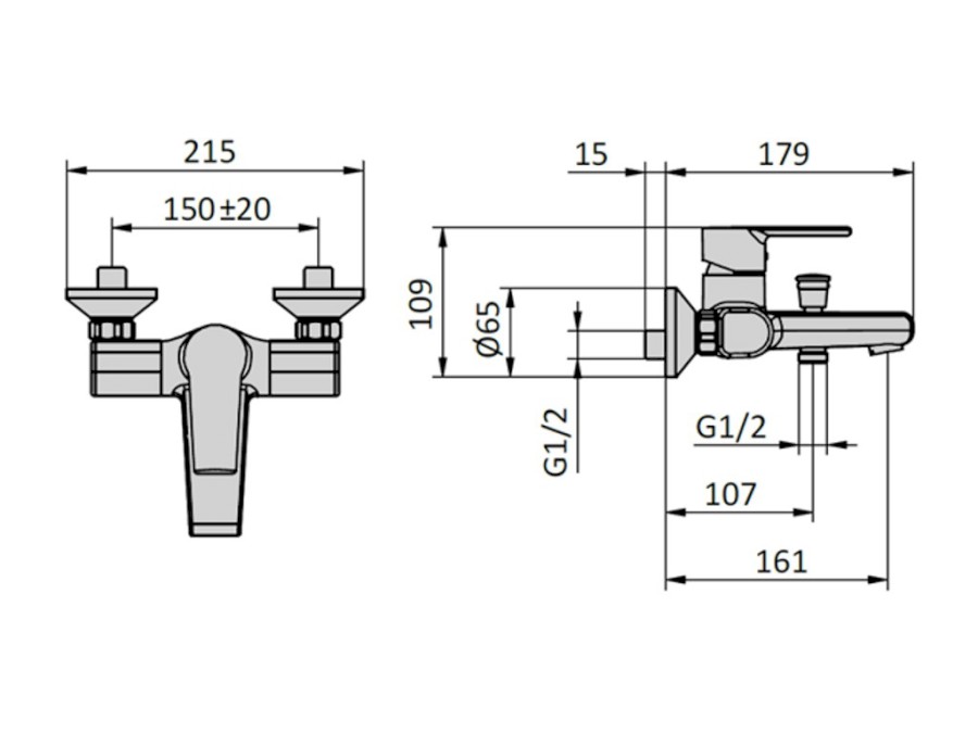 TEN vanová baterie TIEMME bez příslušenství, rozteč 150 mm.
