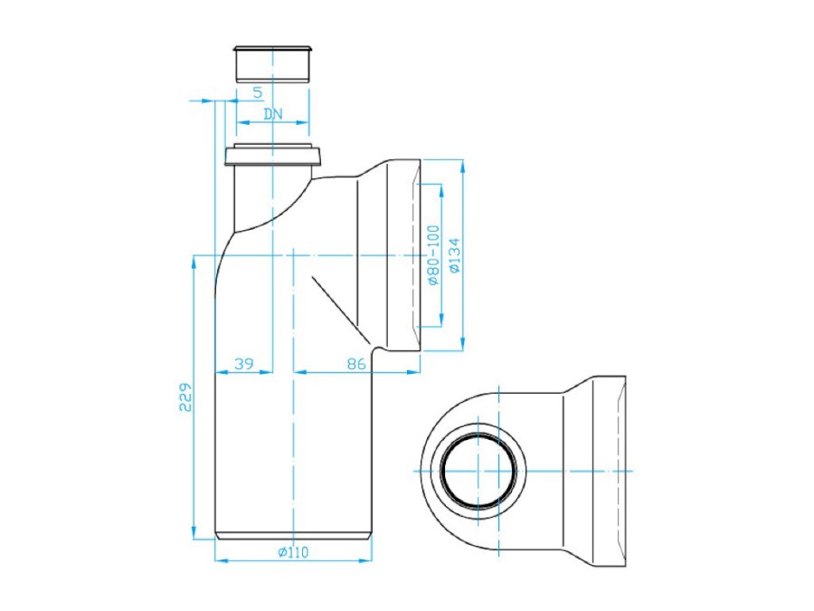 WC dopojení - koleno 90° s připojovací trubkou DN 110/ DN 50
