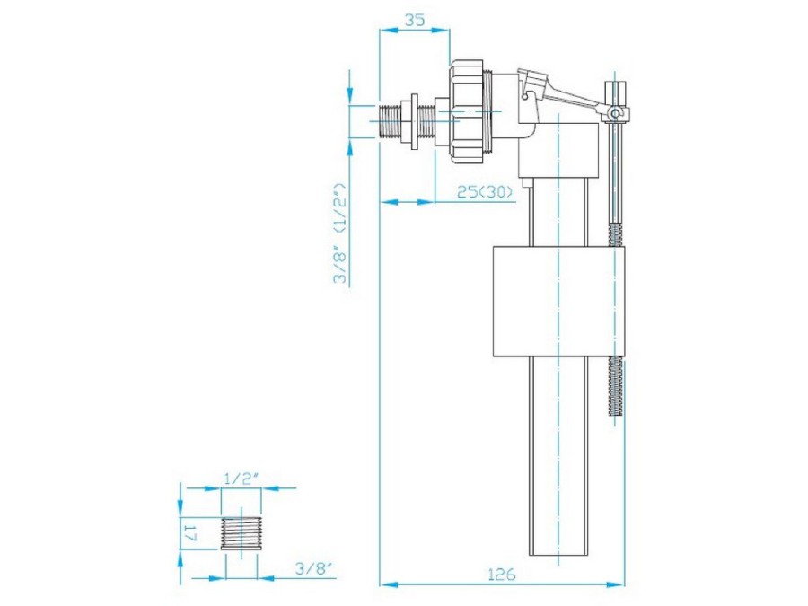 Univerzální plastový boční napoustěcí ventil 3/8" + 1/2".