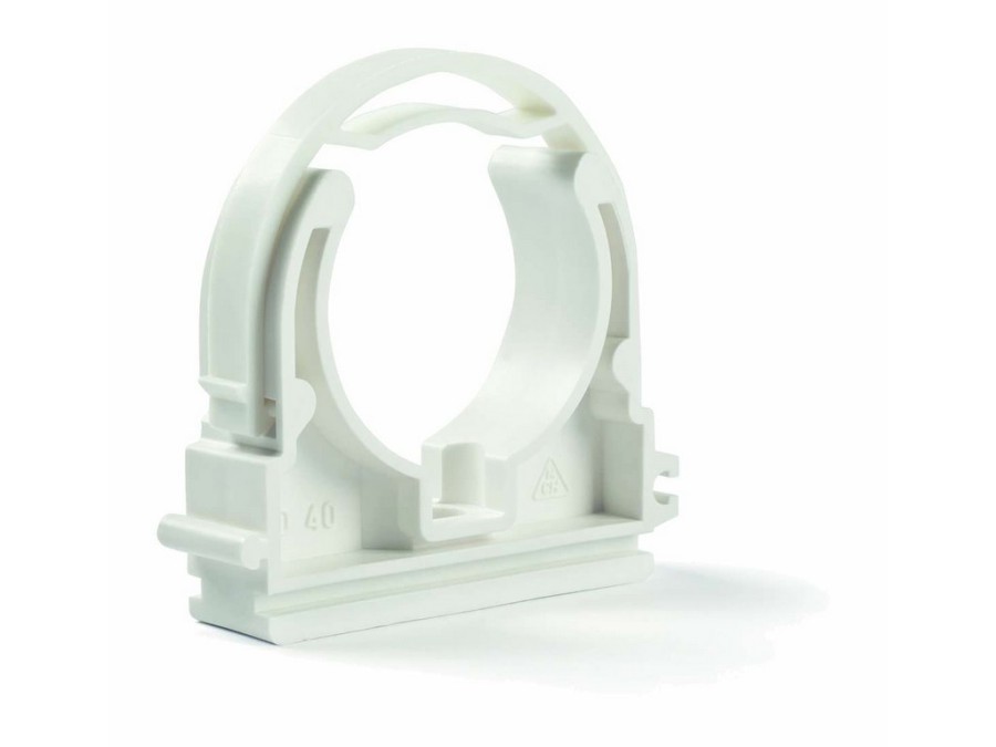 Jednoduchá plastová příchytka měděných trubek bez závitu.