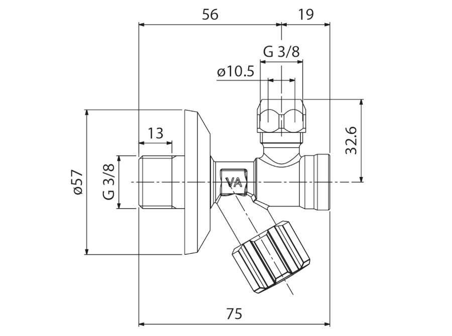 Chrom vřetenový rohový ventil ALBERTONI s filtrem a s matkou.