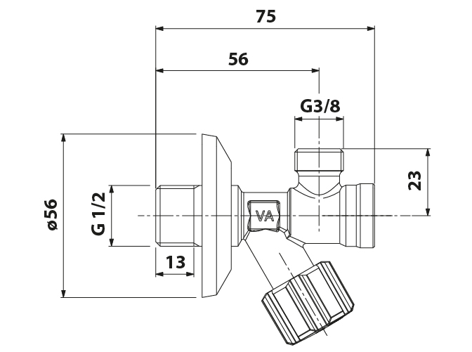 Chrom vřetenový rohový ventil ALBERTONI s filtrem bez matky.