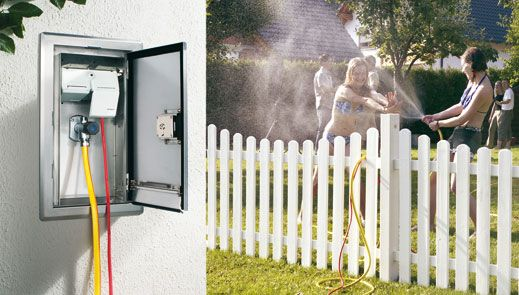 S mrazuvzdornou venkovní armaturou KEMPER: zaručeně mrazuvzdorný díky automatickému vypouštění kompaktní zásobovací stanice pro venkovní prostředí umožňuje současné pohodlné zásobování vodou a elektrickým proudem na centrálním místě. Nezáleží na tom, pro jaké použití a s jakým přístrojem, mytí auta zařízením Kärcher, zahradní práce se sekačkou na trávu, kropicím zařízením trávníku nebo zahradnickými nůžkami nebo zásobování elektřinou pro slavnost s grilováním.