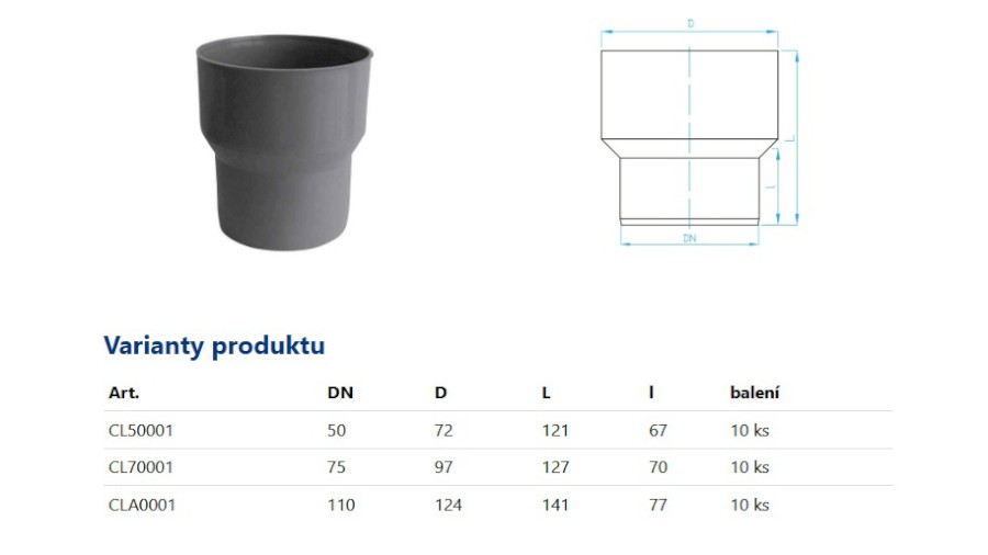 Slouží k přechodu z litinových odpadních trubek na systém HT.