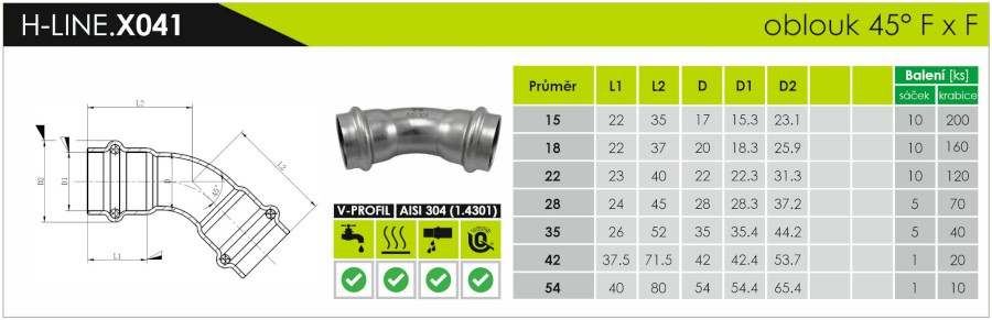 H-LINE INOXPRESS 304 oblouk 45° F x F