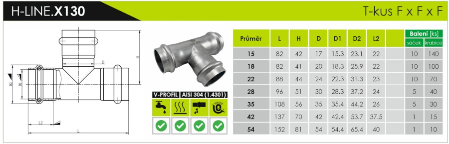 H-LINE INOXPRESS 304 T-kus F x F x F
