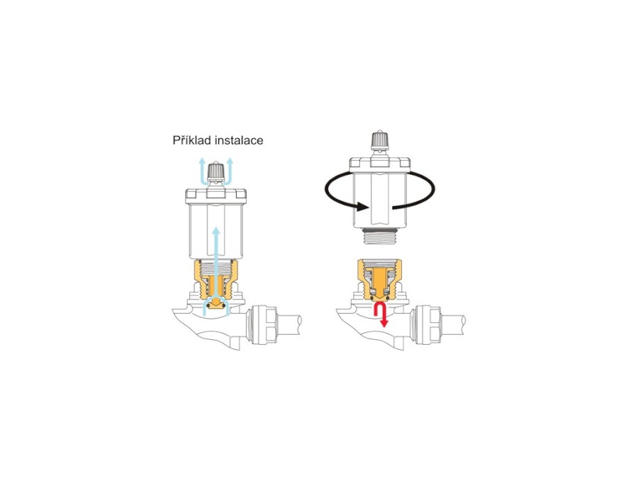 UNI ISO 228 závitem, rychle nahrazuje automatický odvzdušňovací ventil a zabraňuje úniku kapaliny ze systémů.