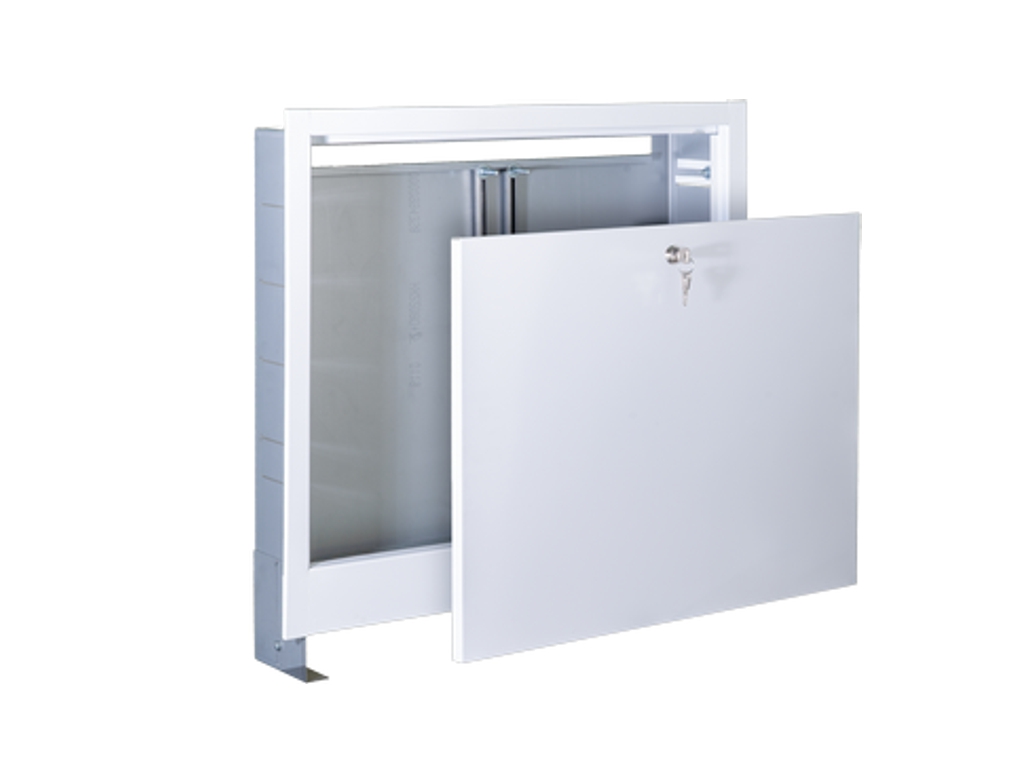 je určena k zabudování do zdi a slouží k elegantnímu, čistému a bezpečnému uložení rozdělovačů podlahového topení nebo vodovodních okruhů. Je vyrobena z pevného pozinkovaného plechu s bílým práškovým nástřikem (RAL 9016).