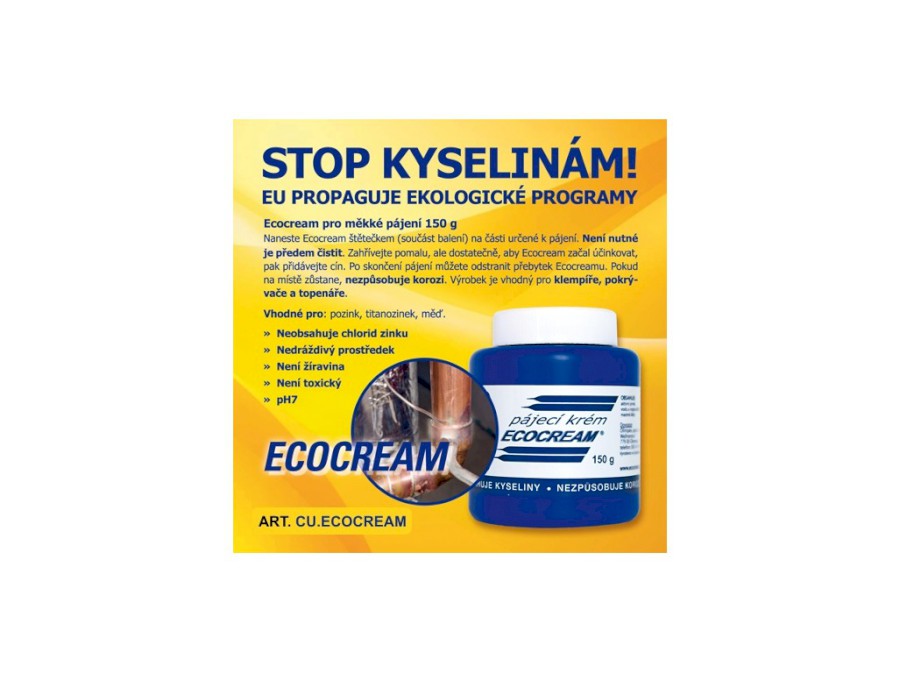 VÝHODY: Na rozdíl od běžných tekutých tavidel, složených ze silných kyselin, které lze snadno rozlít nebo tavidel v pastě s nehygienickým nanášením rukou má ECOCREAM tyto výhody.