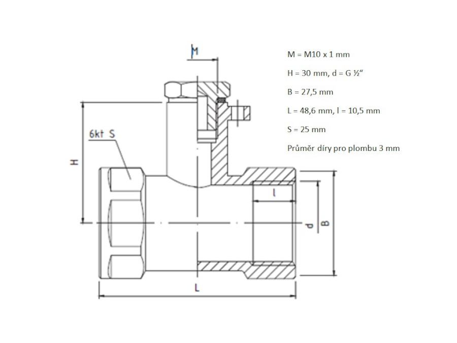 T-kus mosazný s odbočkou se závitem pro čidlo měření.